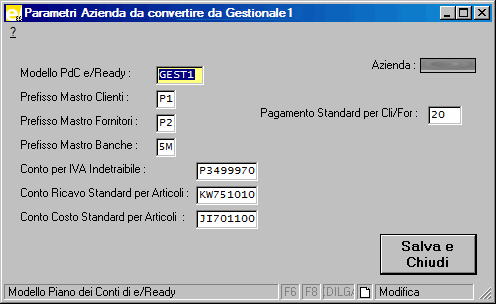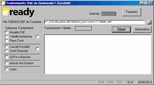 Programma esterno a e/Ready che permette la conversione delle tabelle principali da Gestionale1 di Zucchetti.