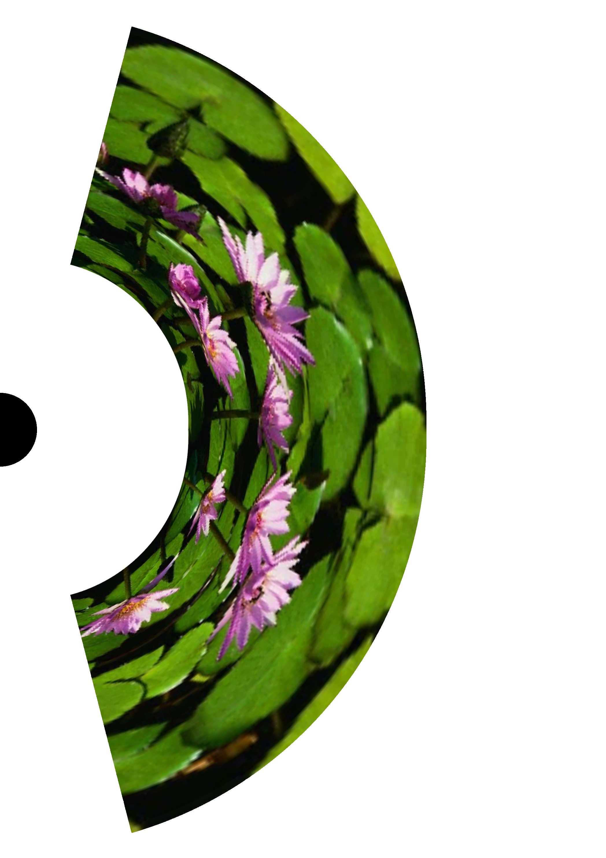 Appoggiando un Cilindro speculare (ottimo 12 cm di diamentro) centrato sul cerchio nero. vedrete specchiata l'immagine come se fosse DENTRO ALLO SPECCHIO nella sua forma rettangolare originale !!!